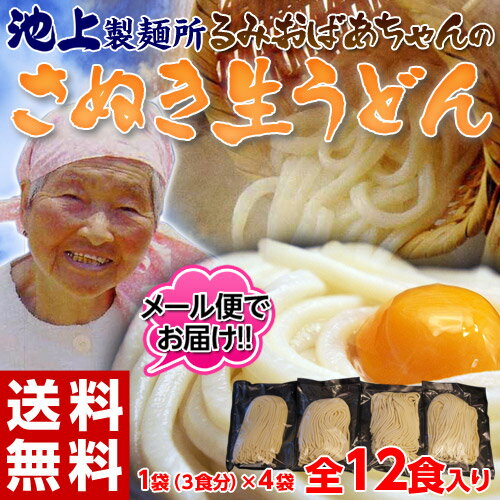 讃岐うどん るみばあちゃん 送料無料 本場香川直送『るみおばあちゃんの生うどん』1袋300g×4袋(12食入り) うどん ウドン udon 国産 生うどん 常温【ゆうメール】【代引不可】【同梱不可】○